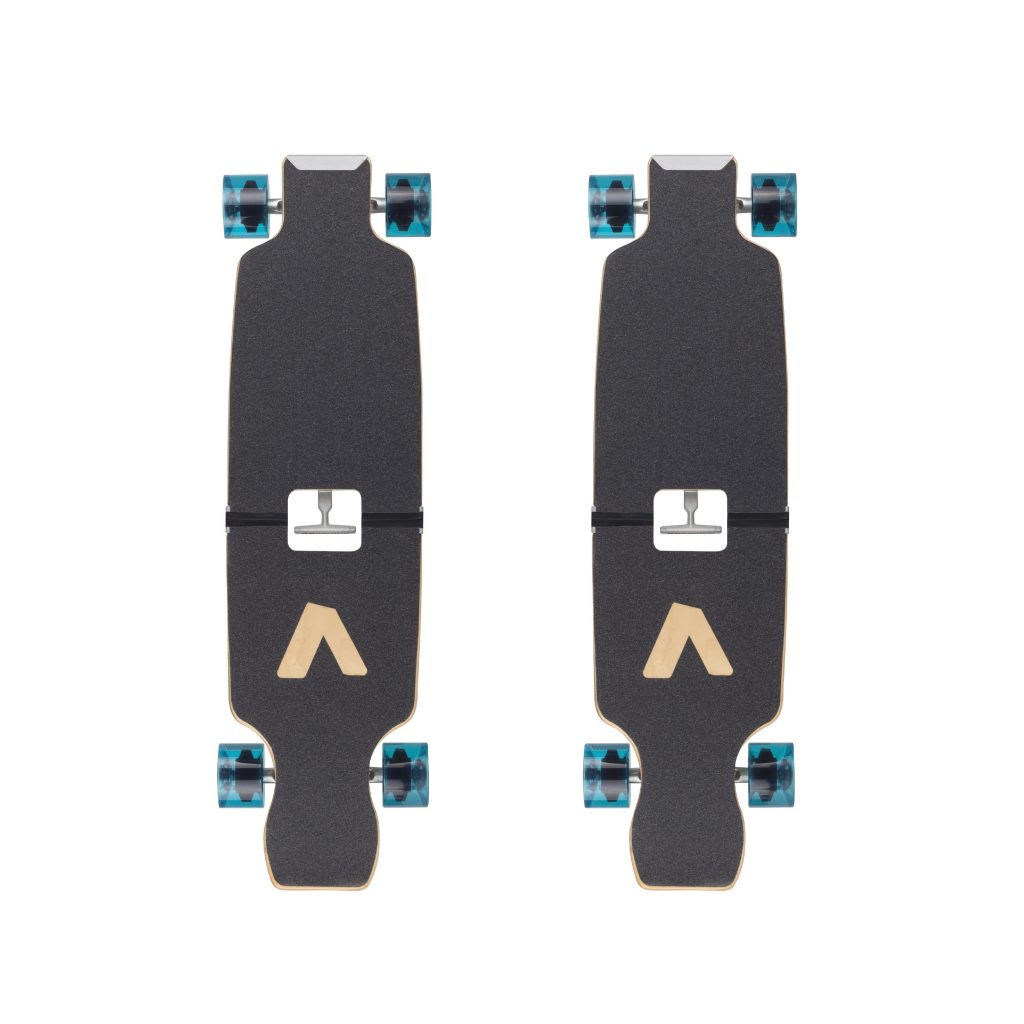 The distance between trucks is 2 inches longer than standard 34-inch longboards, so you have 36 “longboard driving experience with 34” BoardUp.